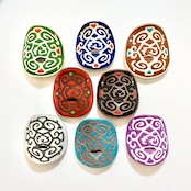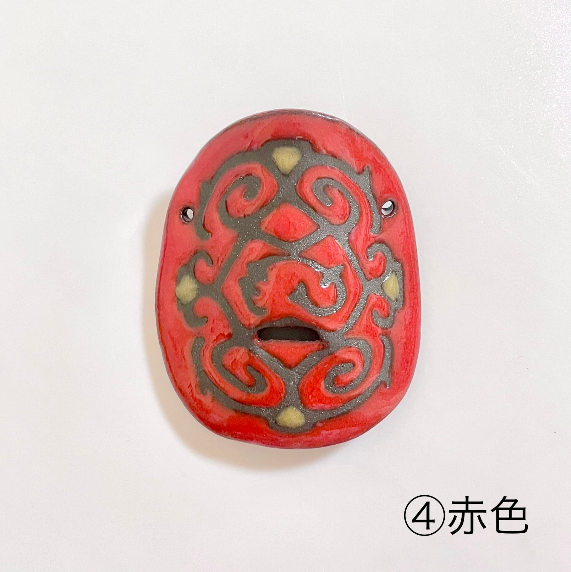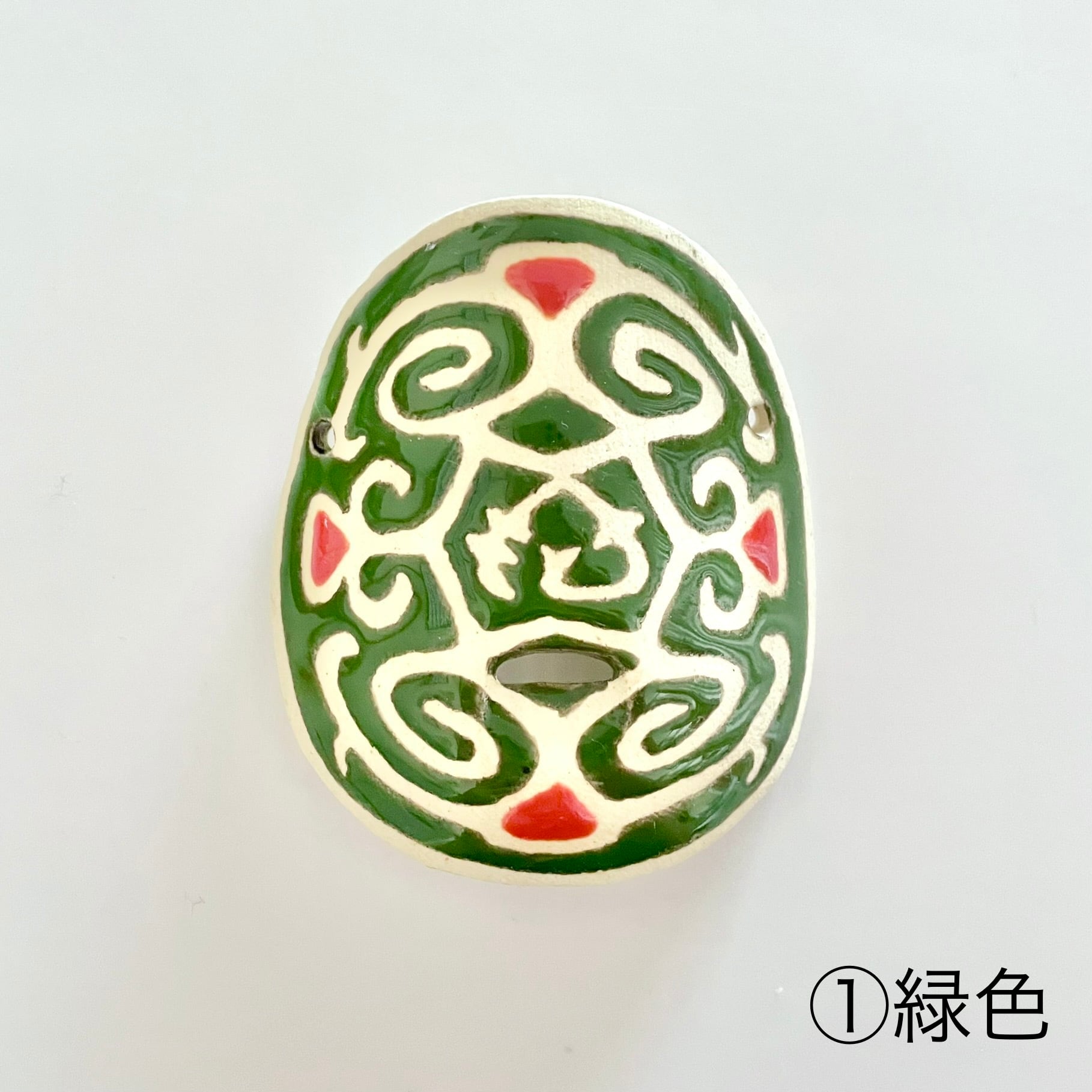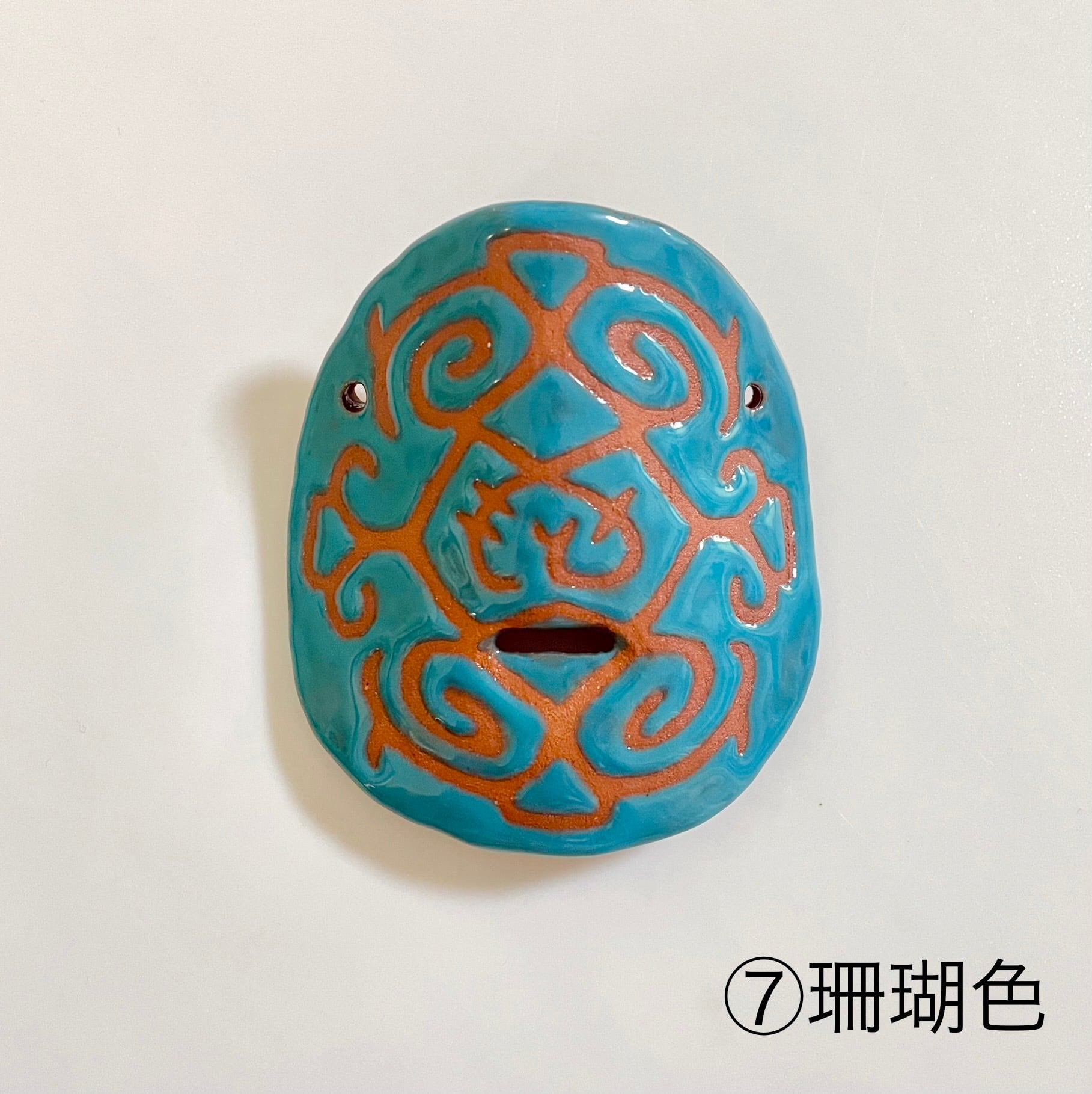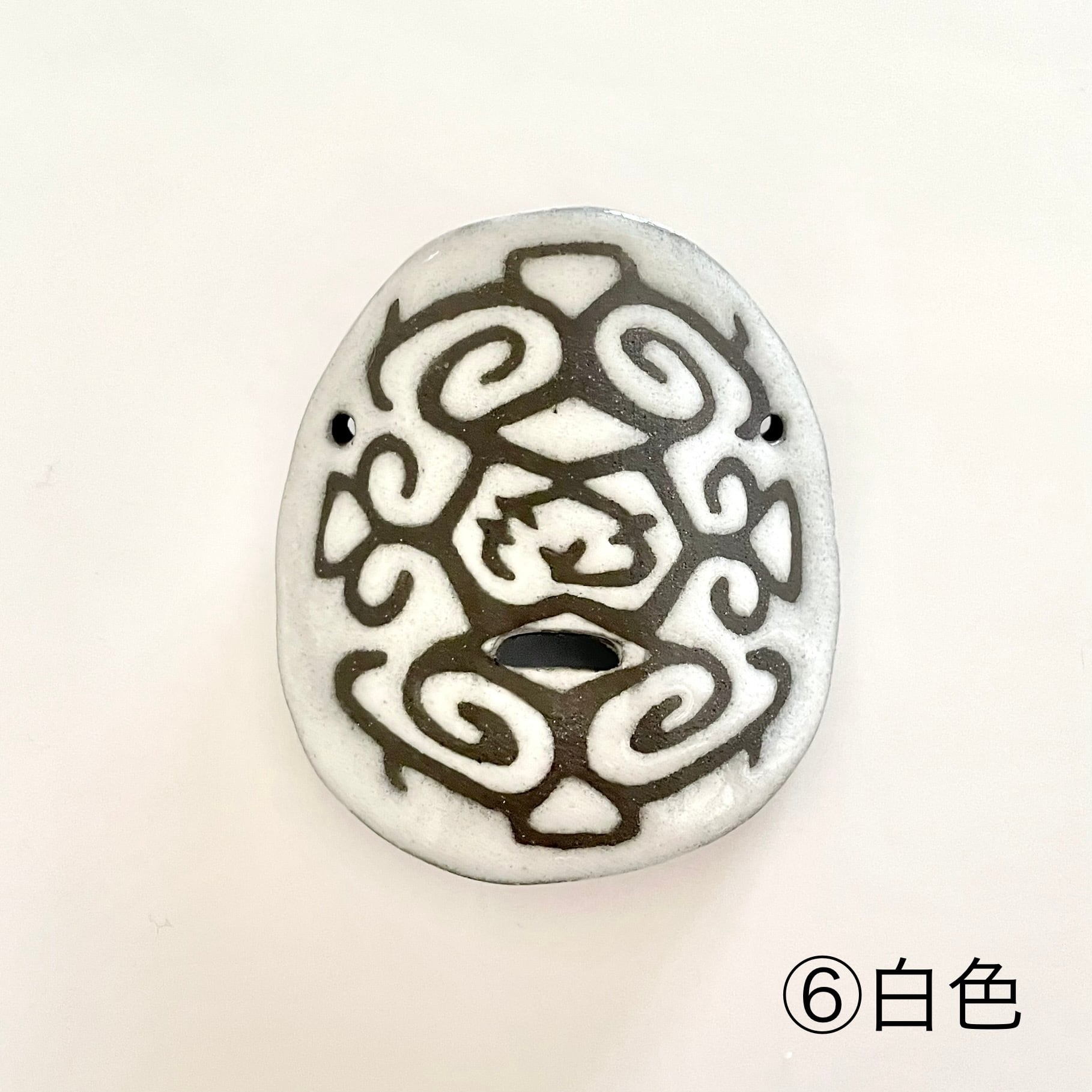 アイヌの伝統模様をモチーフにデザインした陶器製の鼻笛です。